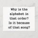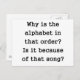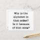 “Why is the alphabet in that order? Is it because of that song?” What came first: the alphabet or the song? Great for children and adults alike.