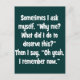 Ever wonder why bad things happen to you? This gives you a funny answer: "Sometimes I ask myself, "Why me? What did I do to deserve this?" Then I say, "Oh yeah, I remember you."