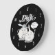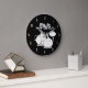 Minimalist black wall clock featuring two grey garlic characters in a playful conversation.