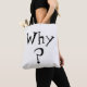 'Why?' This is a fun and creative black and white reversible tote bag with a big question 'why?' followed by a big question mark. One side is black and white, the other is white and black. Sometimes we just want to know 'why'... (You will probably be asked 'why what?' by everyone who sees you carrying this tote though...)