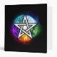 Artistically drawn, luminous pentagram with five magical elements, water, earth, fire, astral, air on black background. Wiccan pentagram. Wicca