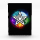 Artistically drawn, luminous pentagram with five magical elements, water, earth, fire, astral, air on black background. Wiccan pentagram. Wicca