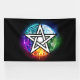 Artistically drawn, luminous pentagram with five magical elements, water, earth, fire, astral, air on black background. Wiccan pentagram. Wicca