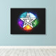 Artistically drawn, luminous pentagram with five magical elements, water, earth, fire, astral, air on black background. Wiccan pentagram. Wicca