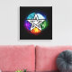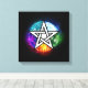 Artistically drawn, luminous pentagram with five magical elements, water, earth, fire, astral, air on black background. Wiccan pentagram. Wicca