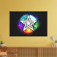 Artistically drawn, luminous pentagram with five magical elements, water, earth, fire, astral, air on black background. Wiccan pentagram. Wicca