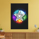 Artistically drawn, luminous pentagram with five magical elements, water, earth, fire, astral, air on black background. Wiccan pentagram. Wicca