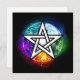 Artistically drawn, luminous pentagram with five magical elements, water, earth, fire, astral, air on black background. Wiccan pentagram. Wicca