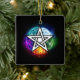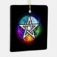 Artistically drawn, luminous pentagram with five magical elements, water, earth, fire, astral, air on black background. Wiccan pentagram. Wicca