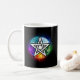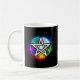 Artistically drawn, luminous pentagram with five magical elements, water, earth, fire, astral, air on black background. Wiccan pentagram. Wicca