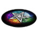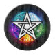 Artistically drawn, luminous pentagram with five magical elements, water, earth, fire, astral, air on black background. Wiccan pentagram. Wicca