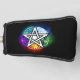 Artistically drawn, luminous pentagram with five magical elements, water, earth, fire, astral, air on black background. Wiccan pentagram. Wicca