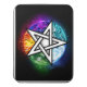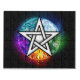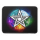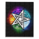 Artistically drawn, luminous pentagram with five magical elements, water, earth, fire, astral, air on black background. Wiccan pentagram. Wicca