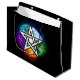 Artistically drawn, luminous pentagram with five magical elements, water, earth, fire, astral, air on black background. Wiccan pentagram. Wicca