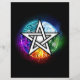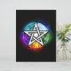 Artistically drawn, luminous pentagram with five magical elements, water, earth, fire, astral, air on black background. Wiccan pentagram. Wicca