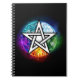 Artistically drawn, luminous pentagram with five magical elements, water, earth, fire, astral, air on black background. Wiccan pentagram. Wicca