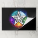 Artistically drawn, luminous pentagram with five magical elements, water, earth, fire, astral, air on black background. Wiccan pentagram. Wicca