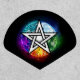 Artistically drawn, luminous pentagram with five magical elements, water, earth, fire, astral, air on black background. Wiccan pentagram. Wicca