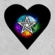 Artistically drawn, luminous pentagram with five magical elements, water, earth, fire, astral, air on black background. Wiccan pentagram. Wicca