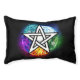 Artistically drawn, luminous pentagram with five magical elements, water, earth, fire, astral, air on black background. Wiccan pentagram. Wicca