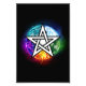 Artistically drawn, luminous pentagram with five magical elements, water, earth, fire, astral, air on black background. Wiccan pentagram. Wicca