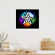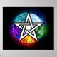 Artistically drawn, luminous pentagram with five magical elements, water, earth, fire, astral, air on black background. Wiccan pentagram. Wicca