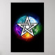 Artistically drawn, luminous pentagram with five magical elements, water, earth, fire, astral, air on black background. Wiccan pentagram. Wicca