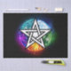 Artistically drawn, luminous pentagram with five magical elements, water, earth, fire, astral, air on black background. Wiccan pentagram. Wicca