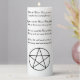 Candle bearing the Wiccan Rede, Threefold Law and a pentacle. "Bide the Wiccan Law ye must, in perfect love and perfect trust. Eight words the Wiccan Rede fulfill, An ye harm none, do as ye will. And ever mind the Rule of Three, What ye send out comes back to thee. Follow this with mind and heart. And merry meet, and merry part. "