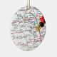Lightweight, smooth, pure white ornament with nice sheen. Perfect size to be seen from across the room ... and to attract closer inspection! Price was great for ordering enough for the whole family! Clear, bold black design just as requested. Matches the order exactly. Just so nice!