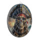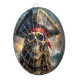 This dramatic artwork features a wicked pirate skull, its hollow eye sockets gleaming with a mischievous glint. Long, tangled hair whips around the bony visage, escaping from beneath a battered pirate hat. Behind the skull, thunderous clouds swirl across a storm-lashed sky, casting eerie shadows over the scene.