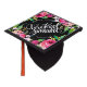 Super cute cap topper with Original calligraphy by Joy Kelley on a black background adorned with watercolor flowers. Personalize with your name and class year.
