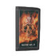 Wicked Wallet text can be customized by you. Flaming skull in space design.