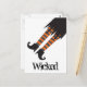 A whimsical Halloween design featuring a tilted witch's lower half with black skirt, striped stockings and black boots. You can edit the text on this post card by replacing the sample text shown in the design template. To change fonts or font size, select the "customize it" button.