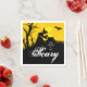 A wicked witch and her cauldron, a black bat, picket fence and bare tree silhouetted against a spooky sky these Halloween party paper napkins feature the words "Eat, Drink & Be Scary." MATCHING items in our store.