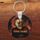 Wicked witch holding a pumpkin. Flames in background. Orange and black colors. Your Name text can be personalized by you.