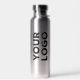 Advertise with your wide business logo repeated 3 times around a branded silver water bottle. Replace the sample logo with your own in the sidebar. Your brand symbol can be any shape and color. This is eco friendly swag your employees, customers and clients will keep and appreciate!