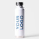 Advertise with your wide business logo repeated 3 times around a branded white water bottle. Replace the sample logo with your own in the sidebar. Your brand symbol can be any shape and color. This is eco friendly swag your employees, customers and clients will keep and appreciate!