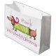 So very happy with the quality of this bag! The thickness of the paper along with the glossy finish I just love it! Can’t wait to give our pup his gifts in this awesome custom gift bag! The printing came out amazing! The black crisp clear printing on the white bag looks amazing! Very pleased with this purchase!