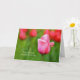 A sentimental wedding anniversary card for your wife with a beautiful photograph of a single pink tulip in a field of smaller red tulips. Front Reads: My Wife, you are the only one for me.