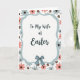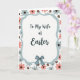 Designed with a central scalloped frame in muted blue-grey that draws the eye right to the message. Inside the frame, the words “To My Wife at Easter” sit centered in a flowing, calligraphy-style font in a dark tone, giving the lettering a tender, intimate look. Just beneath the text, a small bow in soft blue adds a gentle, affectionate accent, like a quiet gift tied with care. Around the frame, a repeating floral pattern fills the background with coral pink and dusty pale blue blossoms, suggesting a spring garden where romance feels natural and unforced 🌷. Between the flowers, deep brown circular dots appear like tiny treats scattered across the page, adding a friendly, cozy rhythm. The wide white space inside the frame keeps the message easy to read and lets the couple-focused wording feel calm rather than crowded 🐰. The scalloped border stays consistent all the way around, with the bow aligned under the centered text.