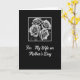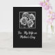 This greeting card features a deep black background that sets a quiet, romantic tone, like a pause taken just to look at someone you love ❤️. Near the top center, a square photo-style inset shows four rose-like blooms in grayscale, their petals curling close together as if leaning into one another. Soft highlights and dark shadows shape the flowers, making the folds and edges feel textured and intimate rather than flashy. A thin white border frames the floral square, giving it a gallery-like look against the dark field. Beneath the inset, a flowing white cursive-style line of text reads, “For My Wife on Mother’s Day,” centered and easy to spot. The contrast between the pale lettering and the dark background keeps the message clear, while the clustered blooms above suggest closeness and steady companionship 🌼. The monochrome flowers sit in a neat square with a crisp white outline, floating above the centered white message on the black front.