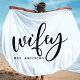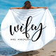 Elegant and chic, this "Wifey" beach towel in classic black and white is a perfect accessory for the newlywed bride. Personalized with her last name, it's ideal for beach outings, honeymoon trips, or relaxing by the pool. The timeless design makes it a thoughtful gift for bridal showers, weddings, or to celebrate her new married status in style.