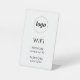 Easily add your own logo and WiFi network and password details for your employees, staff, clients and customers. Minimalist and professional to promote your brand. Change the background color to match your branding. Perfect for a store, office, shop,restaurant, bar, bistro, cafe, hotel or any small business offering free WiFi.