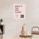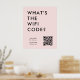 This stylish pink poster print sign provides a clean and modern way for customers or guests to access your wifi network instantly with bold typography quote "What's the WiFi Code?". The design features a central QR code area that can be linked to your wifi details so users can scan to connect without typing a password. Enter your network name and any custom instructions that fit your need. The minimalist layout keeps everything readable which works well for cafes, salons, studios, offices, rental properties, pop ups or event venues. Because the template is fully editable, it adapts easily to branding updates or new wifi information. A practical and polished solution that helps streamline customer access and elevates your in person experience.