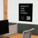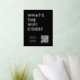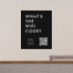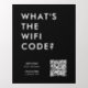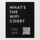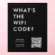 This stylish black wall decal sign provides a clean and modern way for customers or guests to access your wifi network instantly with bold typography quote "What's the WiFi Code?". The design features a central QR code area that can be linked to your wifi details so users can scan to connect without typing a password. Enter your network name and any custom instructions that fit your need. The minimalist layout keeps everything readable which works well for cafes, salons, studios, offices, rental properties, pop ups or event venues. Because the template is fully editable, it adapts easily to branding updates or new wifi information. A practical and polished solution that helps streamline customer access and elevates your in person experience.