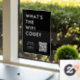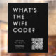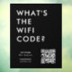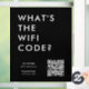 This stylish black window cling vinyl decal sign provides a clean and modern way for customers or guests to access your wifi network instantly with bold typography quote "What's the WiFi Code?". The design features a central QR code area that can be linked to your wifi details so users can scan to connect without typing a password. Enter your network name and any custom instructions that fit your need. The minimalist layout keeps everything readable which works well for cafes, salons, studios, offices, rental properties, pop ups or event venues. Because the template is fully editable, it adapts easily to branding updates or new wifi information. A practical and polished solution that helps streamline customer access and elevates your in person experience.