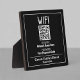 WiFi instructions With QR Code sign for customers, patrons, and guests. Use in bed and breakfast, guest house, Airbnb, restaurants, cafes or hotels. Free-standing plaque for customers, visitors, and tourists etc. Black, gray and white. There are various websites that allow you to create and download QR Codes free. QR Codes can be created for websites, emails, Wifi, Vcards, and many other uses. One example is https://www.qr-code-generator.com