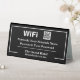 Wifi Instructions desktop sign for customers and patrons showing WiFi Information including the Network and Password as well as a QR Code. Sign for visitors and residents which shows the Internet Wifi Details. There are various websites that allow you to create and download QR Codes free. QR Codes can be created for websites, emails, Wifi, Vcards, and many other uses. One example is https://www.qr-code-generator.com