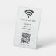 Elevate your space with this minimalist modern table sign, offering a hassle-free way for guests to connect to your WiFi. Upload your personalized QR code and logo, and seamlessly display your network name and password in crisp white lettering. A stylish, functional touch for any setting—perfect for businesses, cafes, or events.